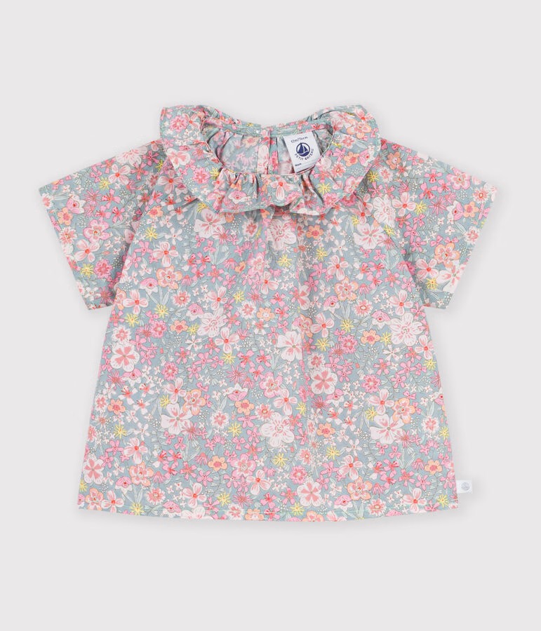 - Très raffinée avec sa collerette volantée et son imprimé fleuri.