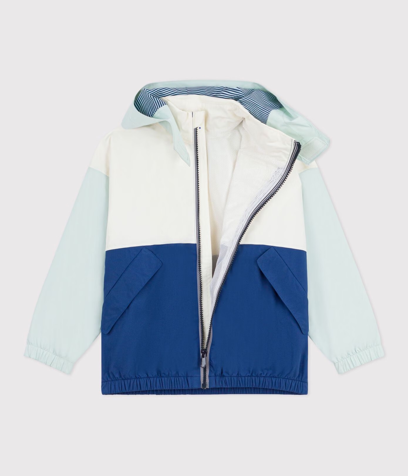 Coupe-vent mixte avec capuche rétractable colorblock. Une pièce tendance, idéale en cas de pluie.